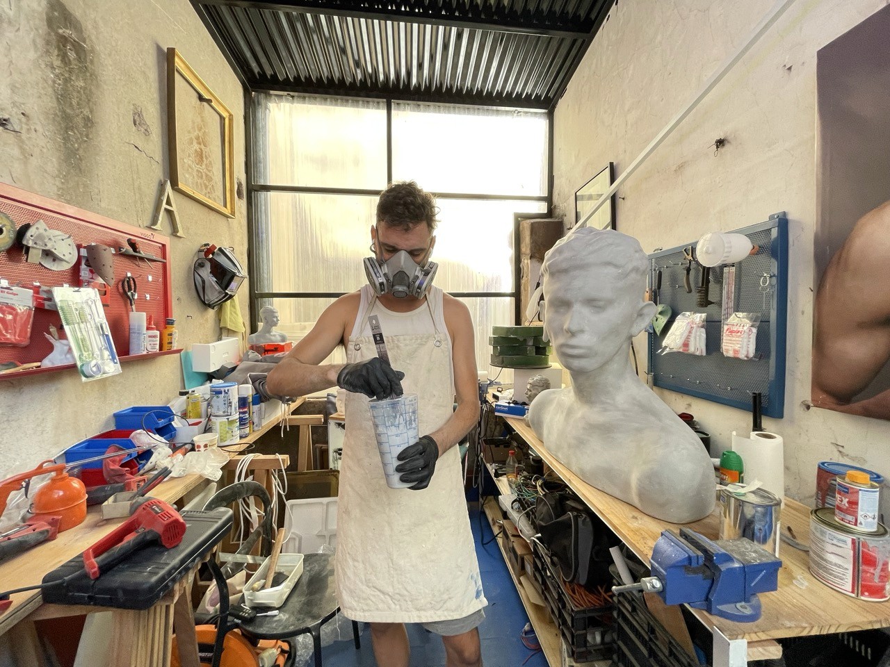 Materializados en fibra de vidrio, resina y estructuras compuestas, los bustos operan tanto como presencias singulares como objetos seriales. Su repetición no es incidental sino estructural: un sistema que refleja la lógica de circulación de la imagen digital —copia, iteración y persistencia.