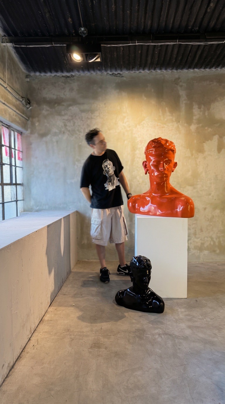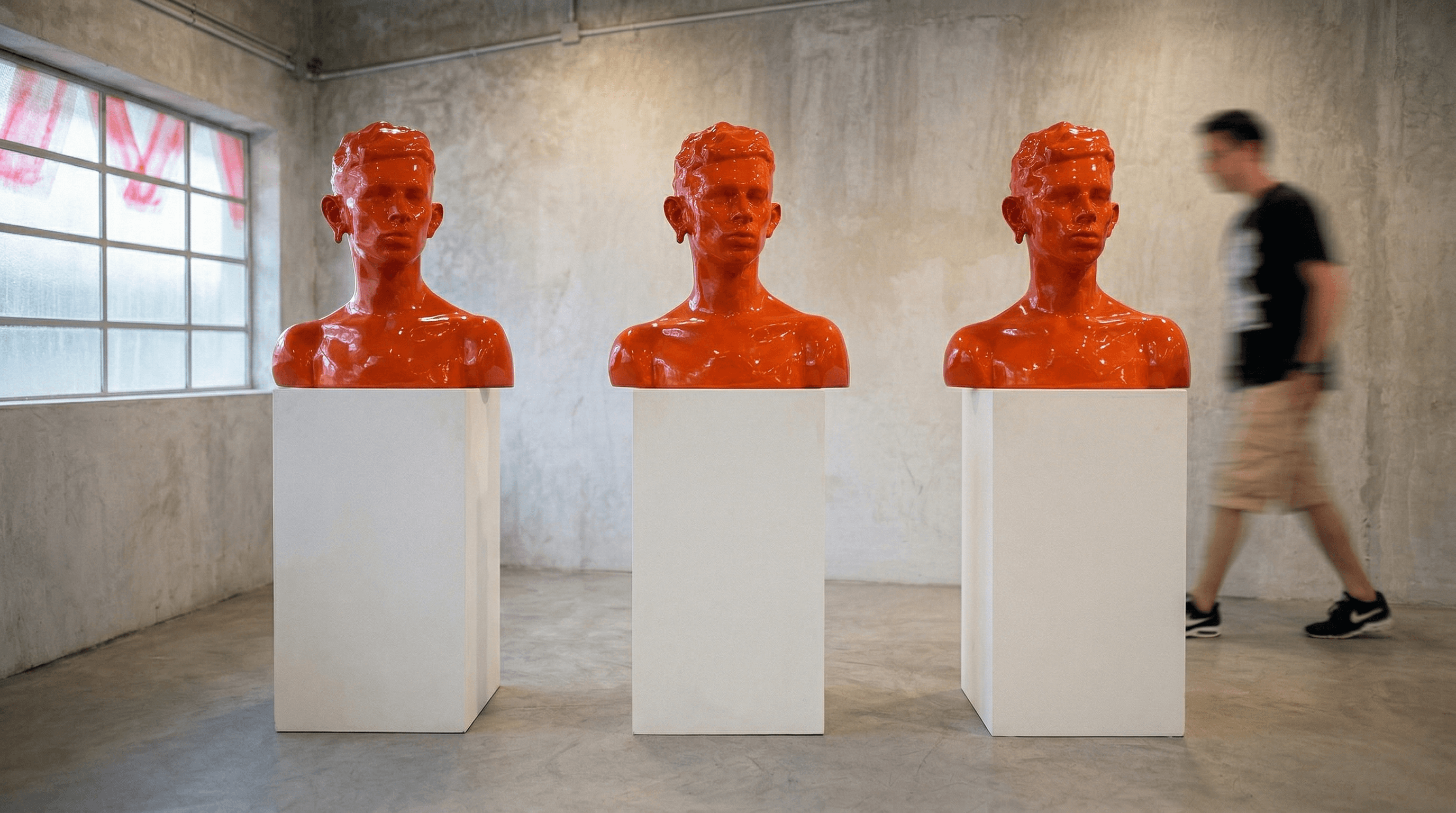 Materialized in fiberglass, resin, and composite structures, the busts operate as both singular presences and serialized objects. Their repetition is not incidental but structural: a system that reflects the logic of digital image circulation—copy, iteration, and persistence.