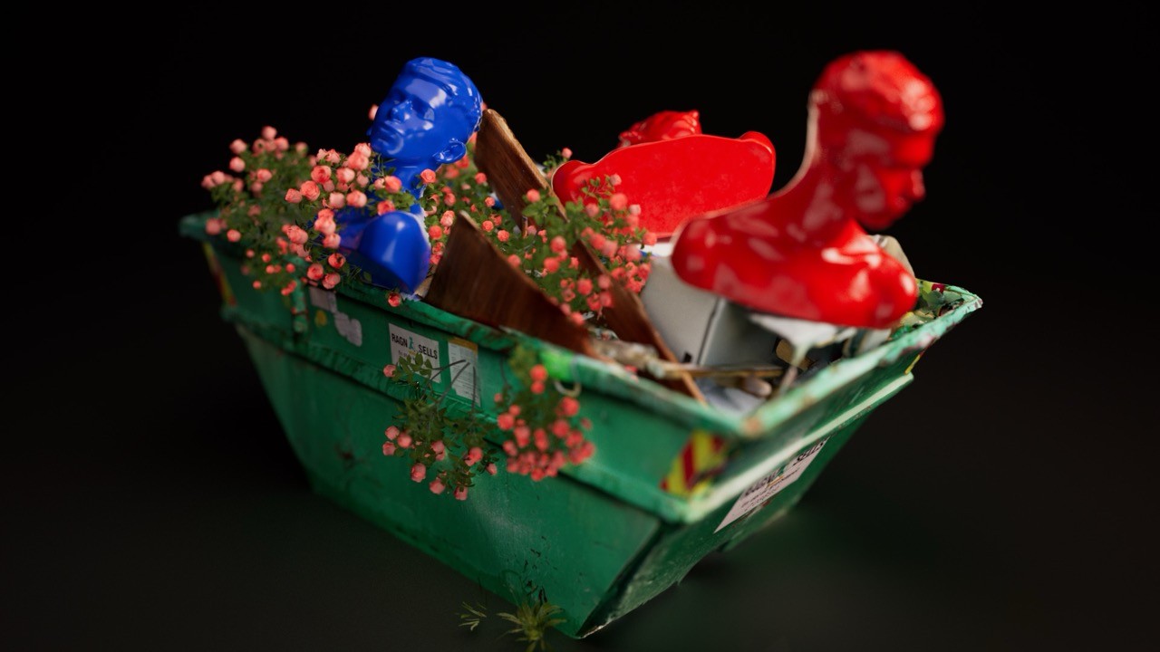 El contenedor se convierte así en un dispositivo narrativo de la impermanencia. En él, lo descartado deja de ser invisible para transformarse en metáfora, revelando cómo el amor, al igual que los objetos, puede degradarse, reciclarse o resignificarse. Entre restos y afectos, la obra invita a observar aquello que la mirada cotidiana decide ignorar y a descubrir, en lo aparentemente banal, una densidad simbólica inesperada.