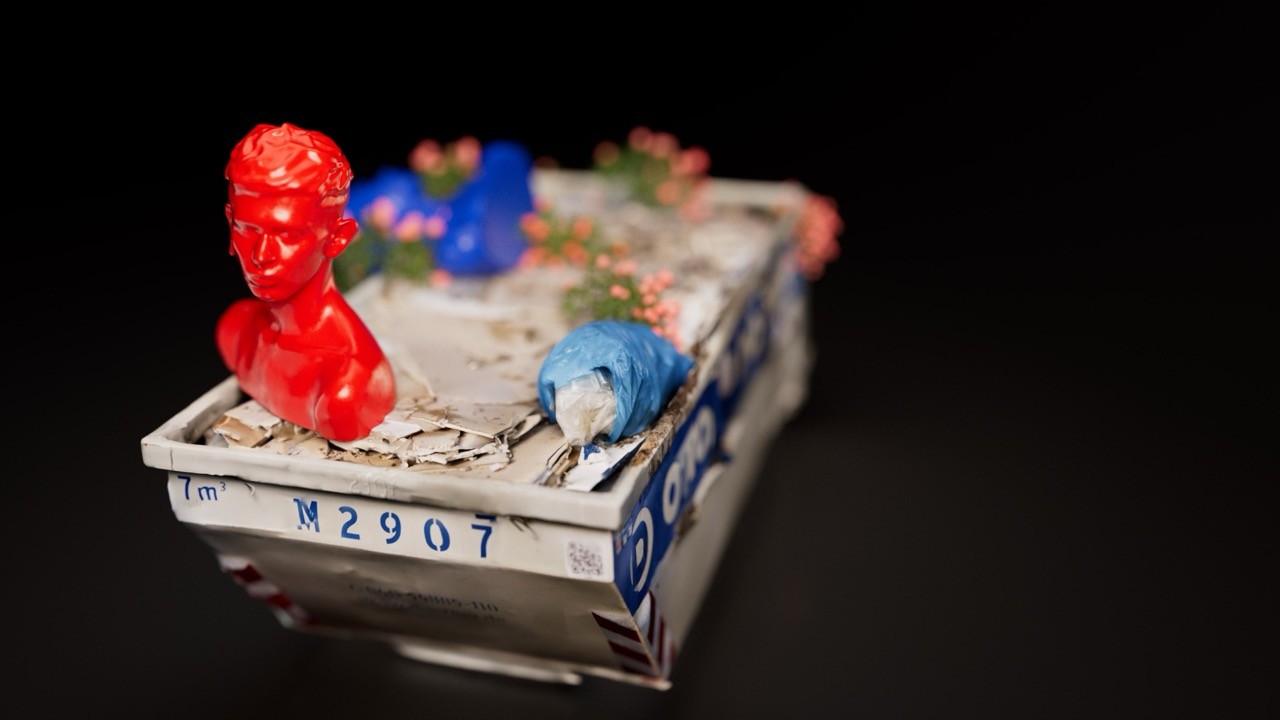 “Discover depth in simplicity. The container embodies narratives of impermanence, where garbage transforms into metaphor. Enter a world where the overlooked reveals profound truths”